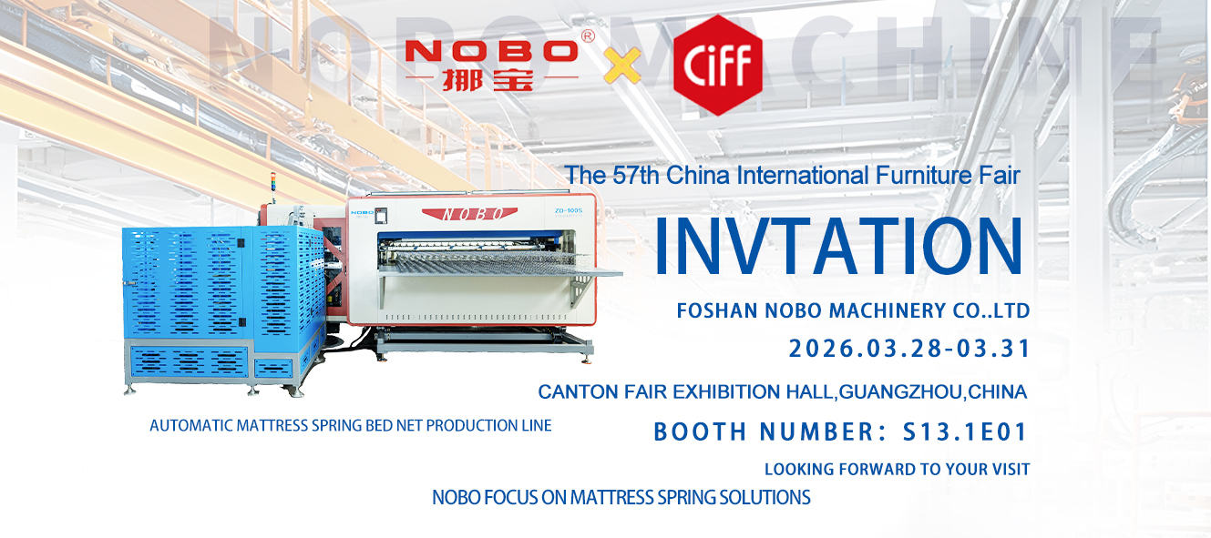 Foshan NOBO Machinery to główna firma:linia produkcyjna sieci materacowych,maszyna do produkcji sprężyny,Taśma maszyna do obróbki krawędzii tak dalej.